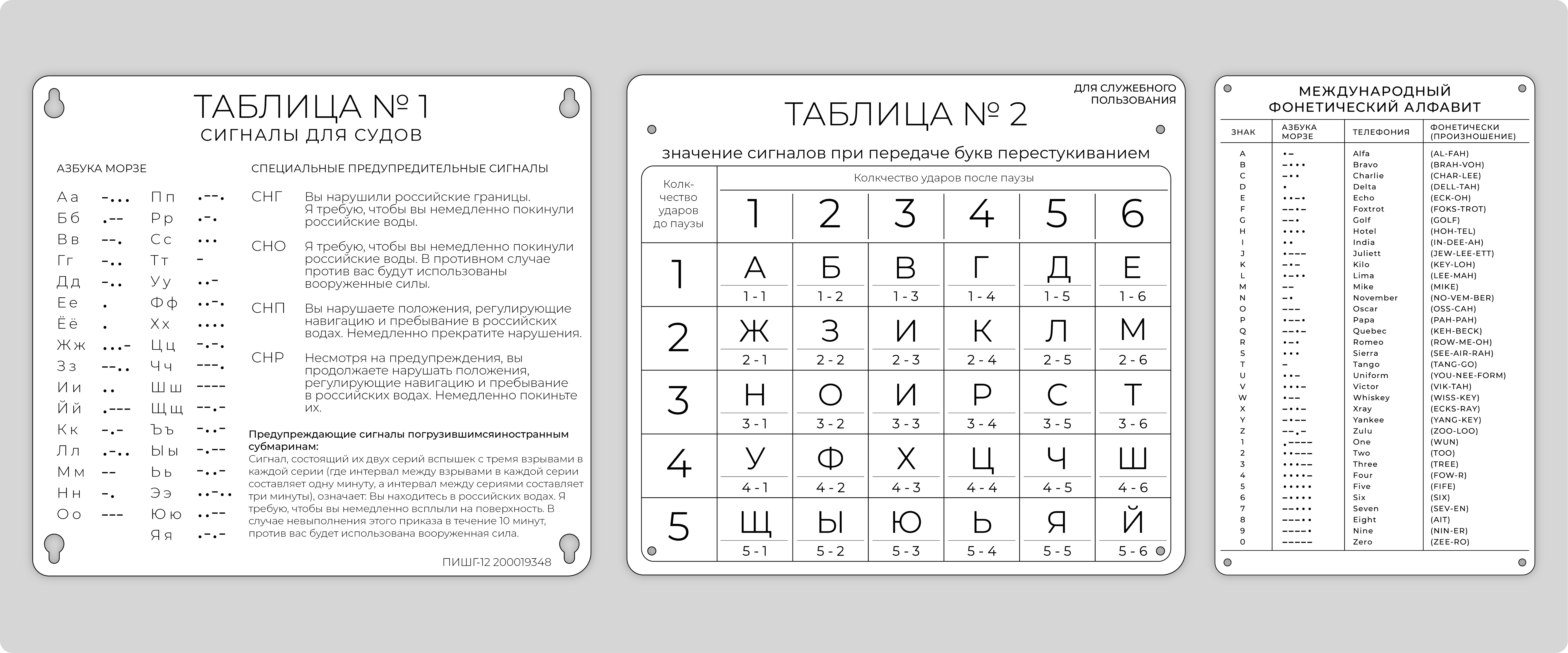 Engraved Russian submarine graphics, morse code and phonetic alphabet.