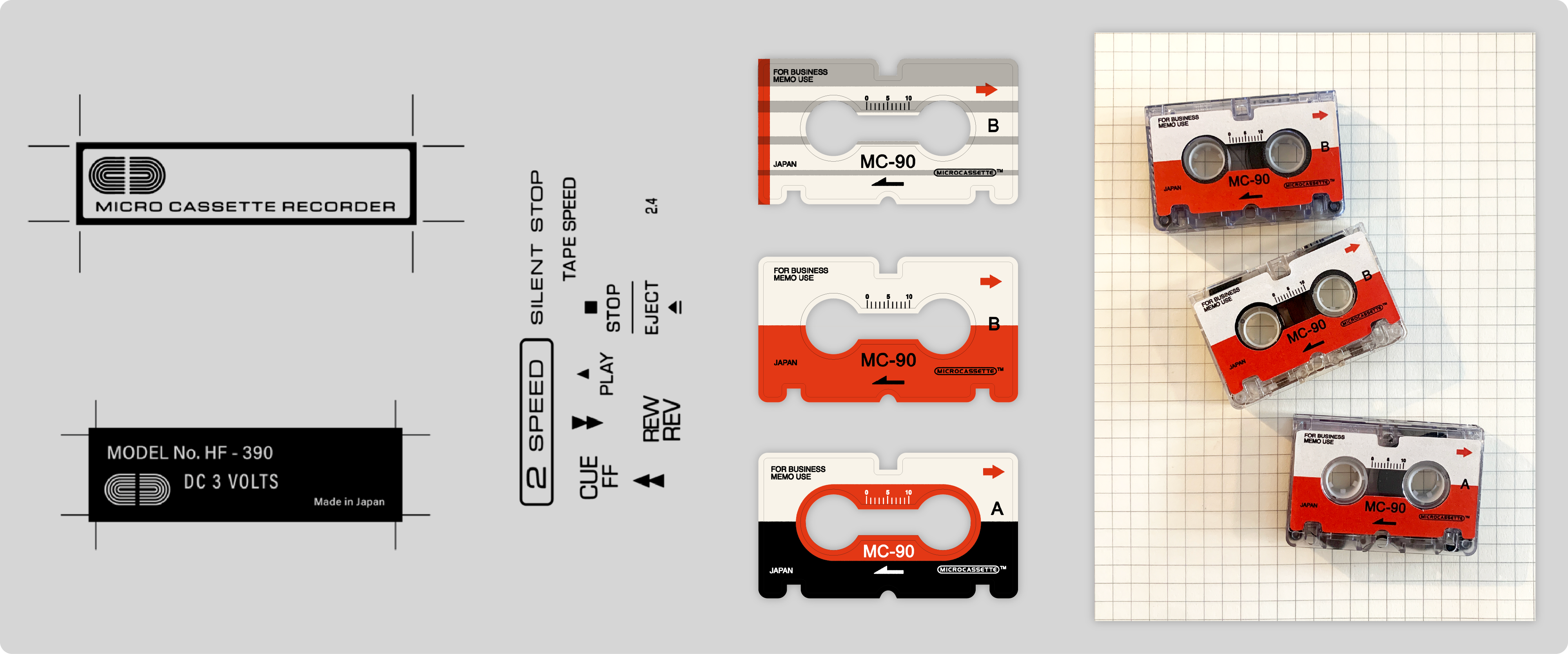 Microcassette player and tape graphics for “Recieving the Mission” scene. (Getting to make these definitely a career highlight!)
